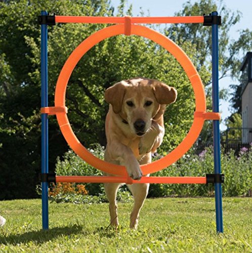 Sturdy and Height-Adjustable Dog Agility Jumping Hoop with Stabilizing Poles – Makes Agility Even More Fun for you and your Dog