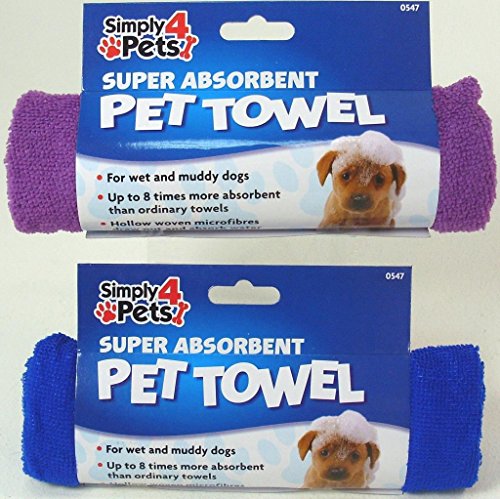 This Microfibre Pet Towel is over 8 times more absorbent than an ordinary towel. Ideal for wet and muddy dogs (or cats!). The perfect way to get your pet clean and dry. The material is a super absorbent combination of polyester and polyamide designed to lift and trap dirt and mud. It is also machine washable at 40 degrees Available in 2 colours: Purple or Blue Dimensions: Approx 51cm x 60cm