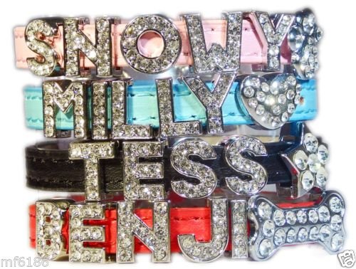 Swanky Paws Xs Personalised Pet Dog Cat Collar Rhinestone Name Bling Charms PU Leather UK