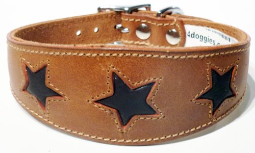 Tan with Brown Star Shape 12″-14″ Whippet Lurcher Greyhound LEATHER DOG PET COLLAR