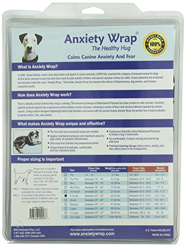 Anxiety Wrap uses the gentle technique of “maintained pressure” and acupressure to help relieve stress. It is used to prevent thunderstorm fear, fireworks fear, separation anxiety and more!