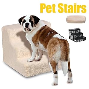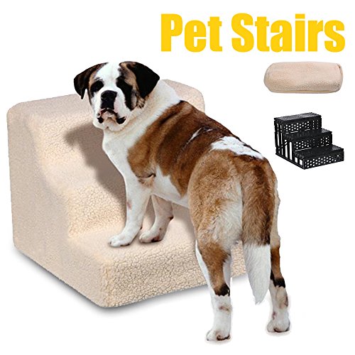 Portable fleece covered plastic frame stairs.3 Layer convenient dog steps.