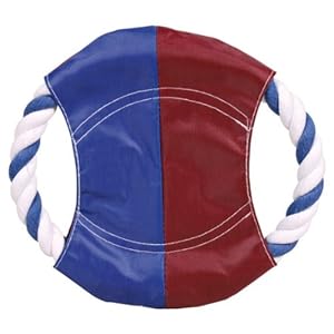 1x dog disc diameter 18 cm; 1x play rope 30 cm; 1x tennis ball on rope diameter: 6 cm/length 37 cm; 1x toy dumbbell, vinyl, 16 cm