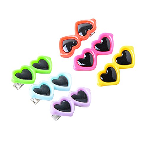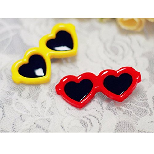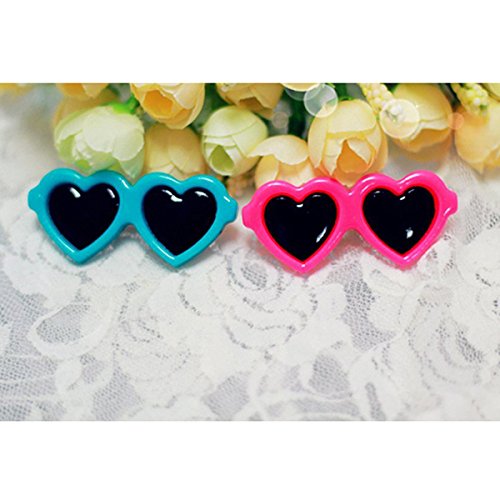 This item is a pack of 20pcs puppy hair clips, which is made of durable plastic with metal clips. It features love heart suglasses style, very sweet and attractive. Great hair grooming for pets,