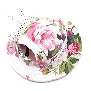 1 * Pet Dog Canvas Hat Sun-shading Cap with Ear Holes for Small Dogs – Size S (Floral Print)