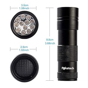 Poketech Ultraviolet 12 LED Pet Urine Detector, Portable UV Flashlight, Dog/Cat Stain Remover
