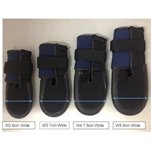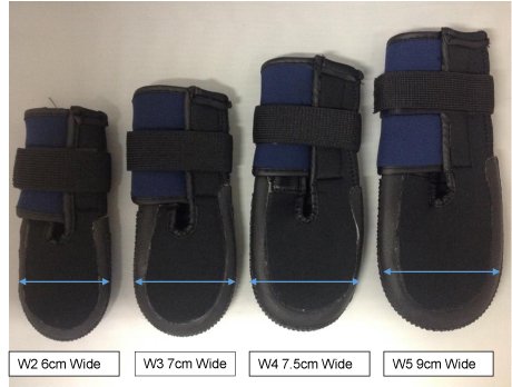 VetProtect is the newest product in the Westcoast range of Veterinary Boots for Dogs. Similar to the TheraPaw boot it is designed with front opening lapels to easily insert the paw. But with the added advantage of a pull tight tab to ensure a snug fit around the dogs wrist. A smooth interior reduces the chance of chaffing and the extra double layer cushioned sole provides superior comfort for dogs with corns and sensitive pads. VetProtect is currently available in four different sizes W2 – W5 please take care when measuring and take into account any bandages or dressings that may be fitted. W2 Paw Width 6.0cm Paw Length 7.0cm W3 Paw Width 7.0cm Paw Length 8.4cm W4 Paw Width 7.5cm Paw Length 8.8cm W5 Paw Width 9.0cm Paw LEngth 10.4cm