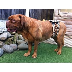 Works with either Glenndarcy XL washable pads which snap into position using a popper system, or you can use disposable nappies/liners placed no the widest part on the fleece side of the product with the elasticated sides creating a sling type effect – this will help hold the pad in and keep everything contained when your dog is wearing it.