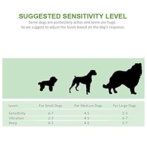 It has 7 level adjustments of sensitivity, vibration and beep, clearly shows on the digital display, allowing you to set the function for the dog. With 8.7″-25.2″