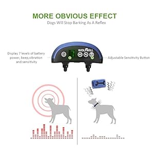 WOLFWILL no shock bark collar aims to correct your dog’s excessive barking. If the dog bark reaches a certain frequency, it will trigger the sound-vibration sensor, first beep and then vibration.