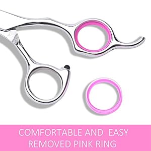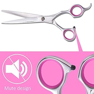 * Pet Friendly Design – with unique muted pad on each scissors handle to reduce the impact sound, no worry about your pet scaring of sharp scissors, easy shaping for pet hair, eyebrows, hip, legs and paws