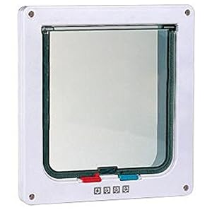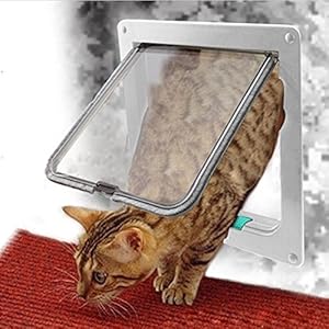 White cat door gives your cat or small dog the freedom to come and go without bothering you.