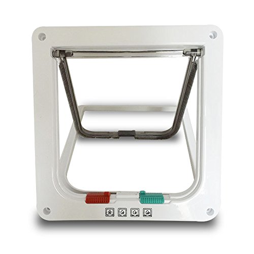 XGUO Pet dog Cat Flap with 4 Way Locking: Open, Fully locked, Out only, In only.