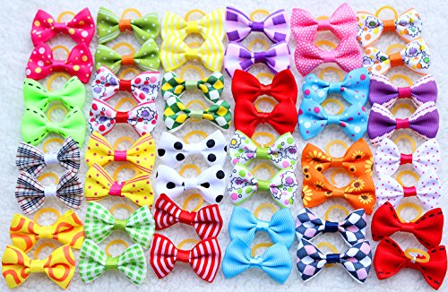 Yagapet 50pcs/25pairs Dog Hair Bows Topknot Mix Styles Small Bowknot with Rubber Bands Classic Plaid Style Top Quality Pet Grooming Products Dog Hair Accessories