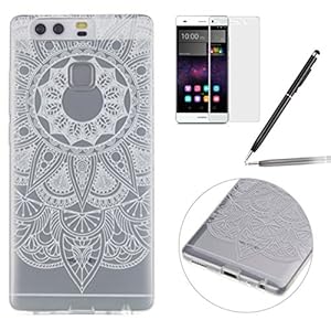 Huawei P9 Case, Huawei P9 Slim Case, Felfy Elegant Premium Embossing Colorful Butterfly Pattern Creative Ultra Thin Soft Silicone Gel TPU Clear Crystal Transparent Exact Fit Anti Scratch with Back Bumper Cover Protective Shell Cover Case for Huawei P9 + 1x Black Touch Screen Stylus + 1x Screnn Protector