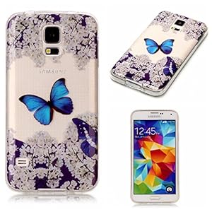 Silicone Case for Galaxy S5,Rubber Bumper Case for Samsung Galaxy S5,Leeook Crystal Clear Slim Fit Pretty Beautiful Blue Mandala Flower Design Soft Gel Silicone Bumper Scratch-Resistant Transparent Flexible Ultrathin Tpu Rubber Case Cover for Samsung Galaxy S5 + 1 x Black Stylus-Blue Mandala Flower