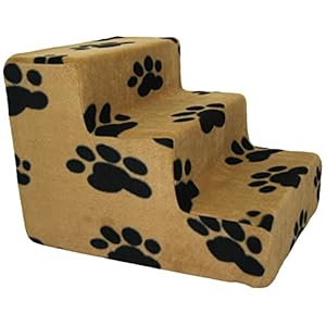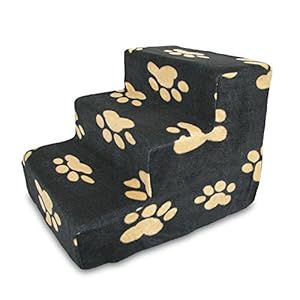 Best Pet Supplies 3-Step Foam Pet Stairs/Steps, 18 by 15 by 13-Inch, Black Paw on Beige
