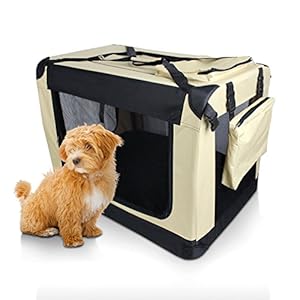 AuralumĀ® Portable Carrier for Dogs Foldable Dog Cages Pet Carriers Dog Crates for Travel Khaki 91.4 * 63.5cm * 63.5 -XXL
