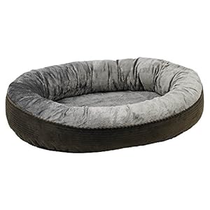 Designer Orbit Bed in Coffee and Grey Teddy Fabric (Large: 42 x 32 x 9 in.)
