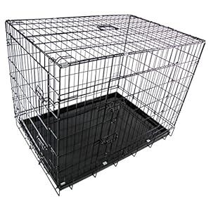 RayGar 36-Inch Standard Dog Cage Kennel Puppy Cat Pet Crate Cage Carrier 2 Door Foldable With Metal Tray – Large