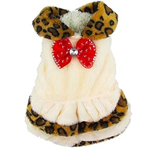 Pet Cat Dog Clothes Leopard Trim Coat Dress Small Dog Costume XS S M L XL