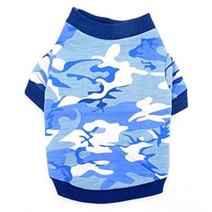 SMALLLEE_LUCKY_STORE 100% Cotton Camo Shirt Camouflage T-shirt Tee Pet Clothes for Small Dog Cat Blue