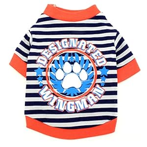 SMALLLEE_LUCKY_STORE Small Dog Shirt Striped T-shirt PAW Print Cat Tee Pet Clothes Cotton Blue